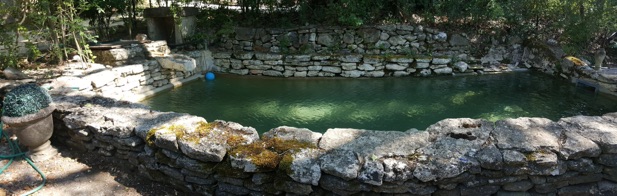 Ein Natursteinbassin aus dem 17 Jhdt wurde renoviert und bietet jetzt eine wunderbare Erfrischung im Schatten der Bäume. Ideal auch für Nicht-Schwimmer.